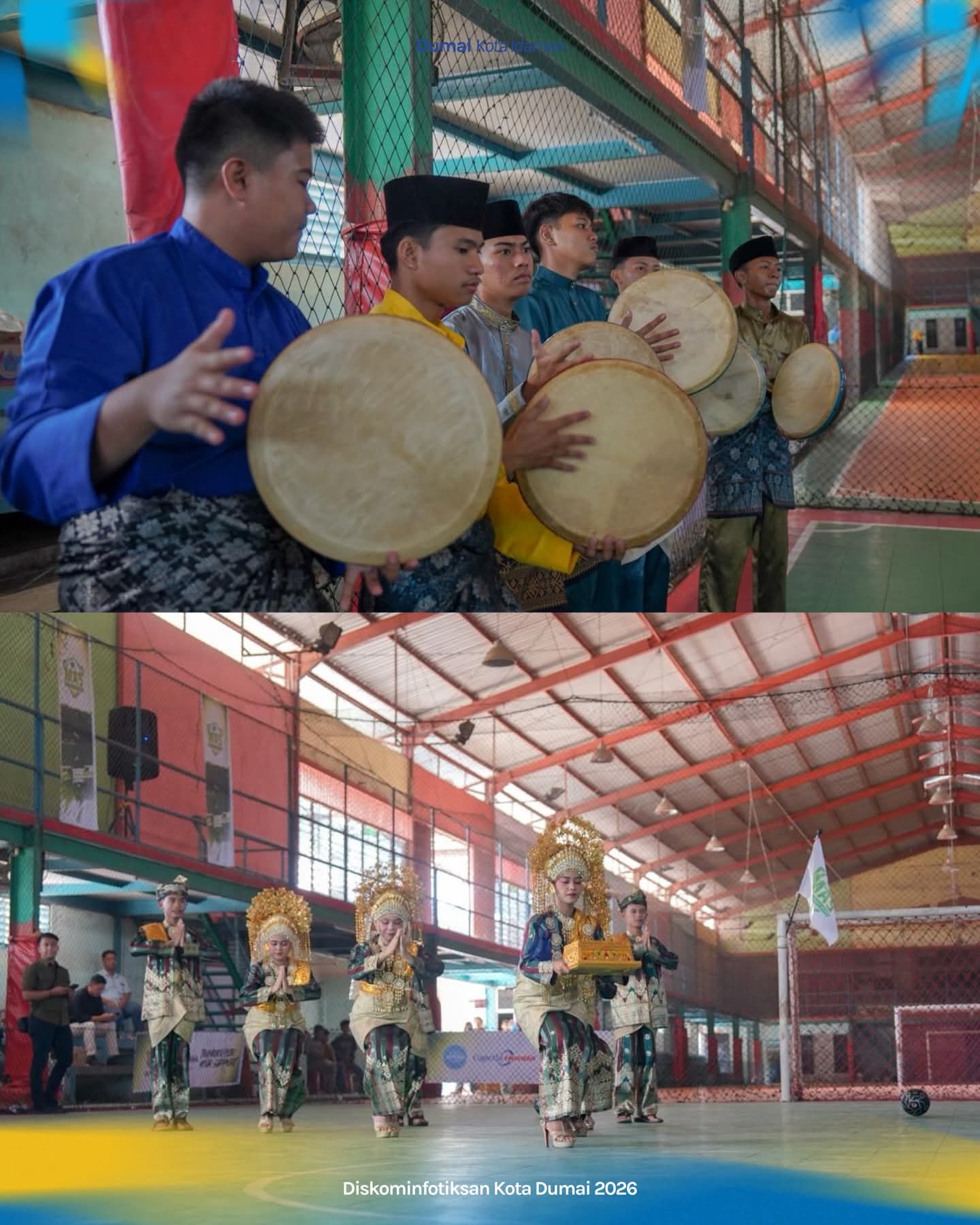 Pembukaan Turnamen Futsal ini diawali dengan sambutan melalui Tari Persembahan dan menyanyikan lagu kebangsaan Indonesia Raya.