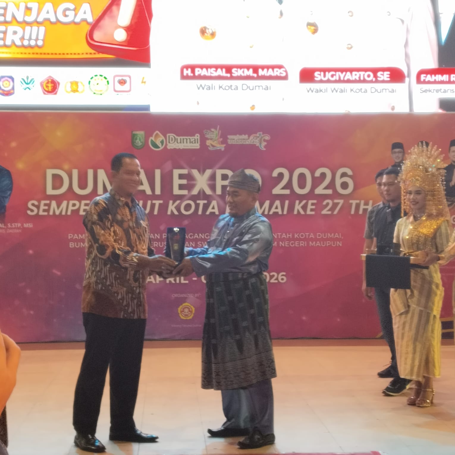 Dalam sambutan malam Ulang Tahun Kota Dumai ," Wakil Wali Kota Dumai Sugiyarto, S.E., menyampaikan ucapan terima kasih kepada penyelenggara pelaksana Expo Karang Taruna, yang telah siap dalam mempersiapkan persiapan pelaksanaan Dumai Expo 2026 dengan meriah tanpa menggunakan APBD Kota Dumai.