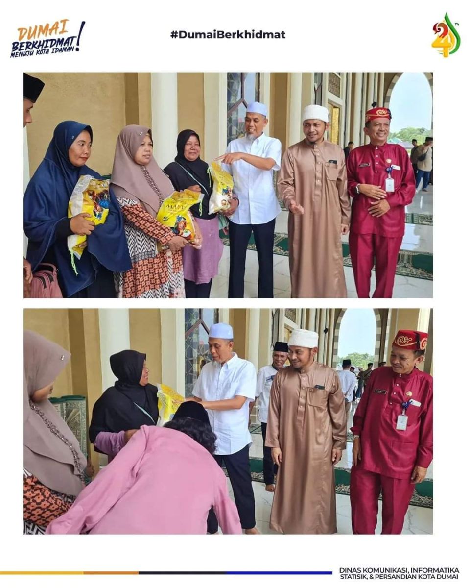 Pembagian sembako tersebut diserahkan secara langsung oleh Wali Kota Dumai didampingi oleh Asisten II Asisten Perekonomian dan Pembangunan H. Syahrinaldi.