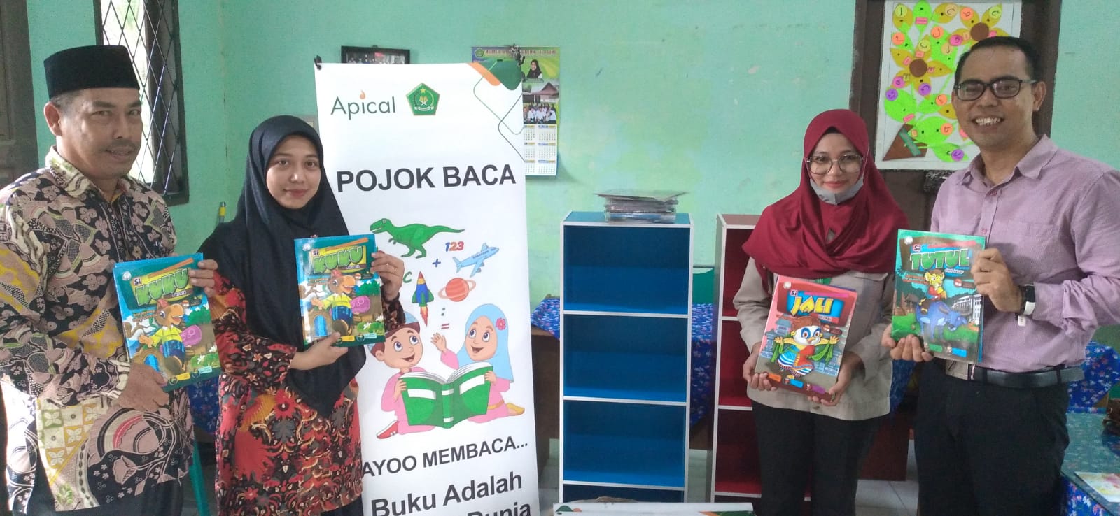 Bantuan buku tersebut diserahkan secara langsung oleh Putri Ramadhani staff Apical Dumai kepada Ibu Zahriani,Spdi , Wakil Kurikulum Madrasah Ibtida’iyah Negeri 01 Dumai yang disaksikan oleh Theo E F lubis district Coordinator Tanoto Foundation Kota Dumai  literasiliterasi