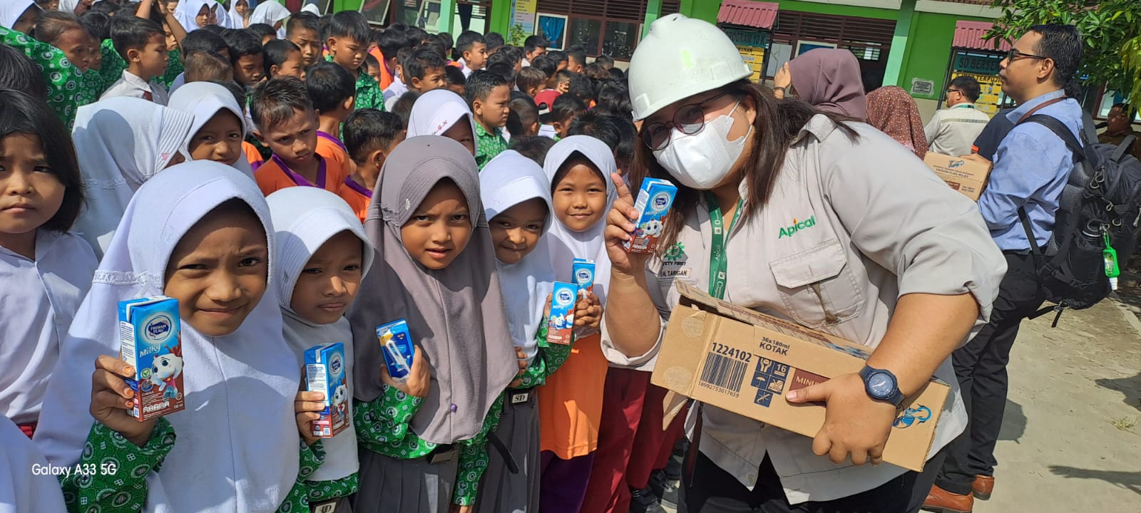 Sejalan dengan hal tersebut, Apical bersama Tanoto Foundation juga melakukan pembinaan kesejahteraan masyarakat dengan memberikan susu yang merupakan sumber nutrisi yang baik bagi tubuh.