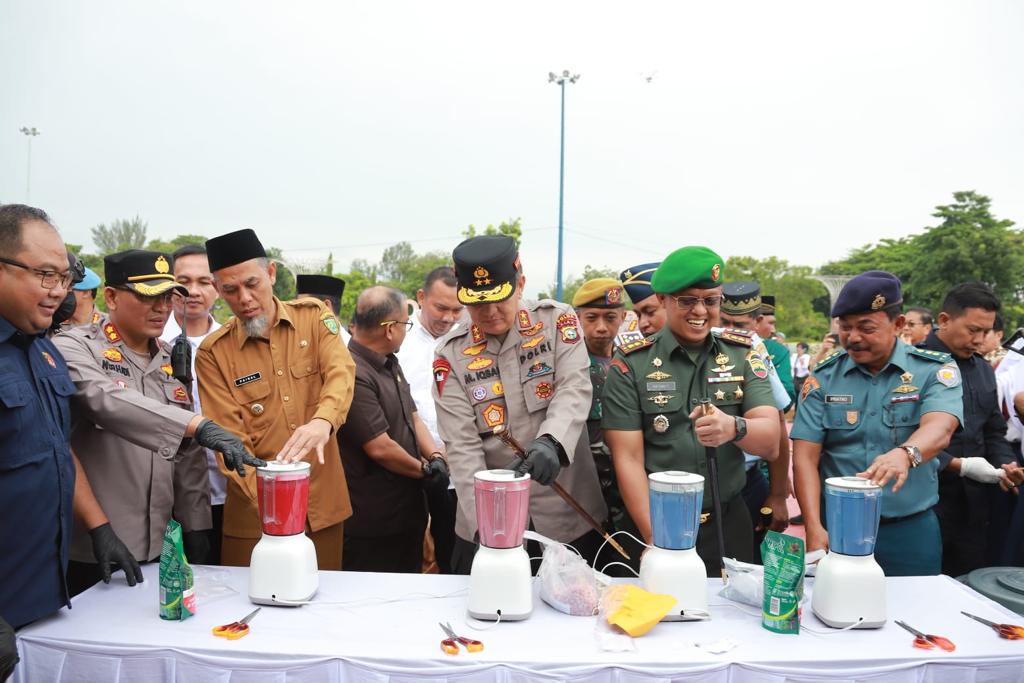 Usai pelaksanaan konferensi pers, kegiatan dilanjutkan dengan Pemusnahan Barang Bukti Narkotika Hasil Ungkap Kasus Peredaran Gelap Narkotika Jenis Shabu sebanyak