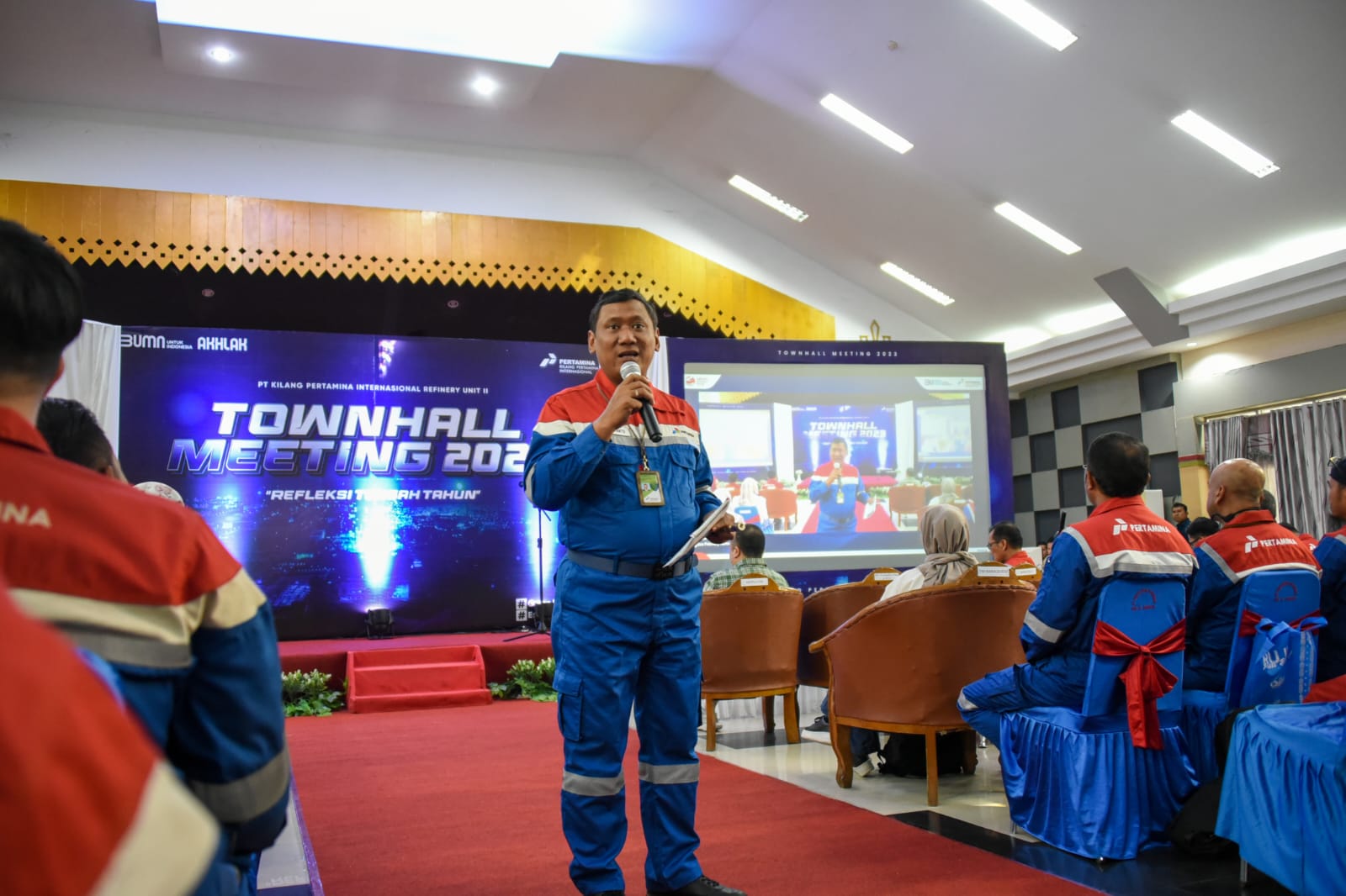 Townhall Meeting yang diselenggarakan kali ini mengusung tema “Refleksi Tengah Tahun” yang dihadiri oleh VP PPM, Permono Avianto, jajaran tim manajemen, section head, serta lebih dari 500 perwira PT KPI Unit Dumai. Rangkaiannya dimulai dengan pemaparan materi internalisasi AKHLAK melalui Living Core Values (LCV) dan ditutup dengan sesi motivational oleh coach Rene Suhardono.
