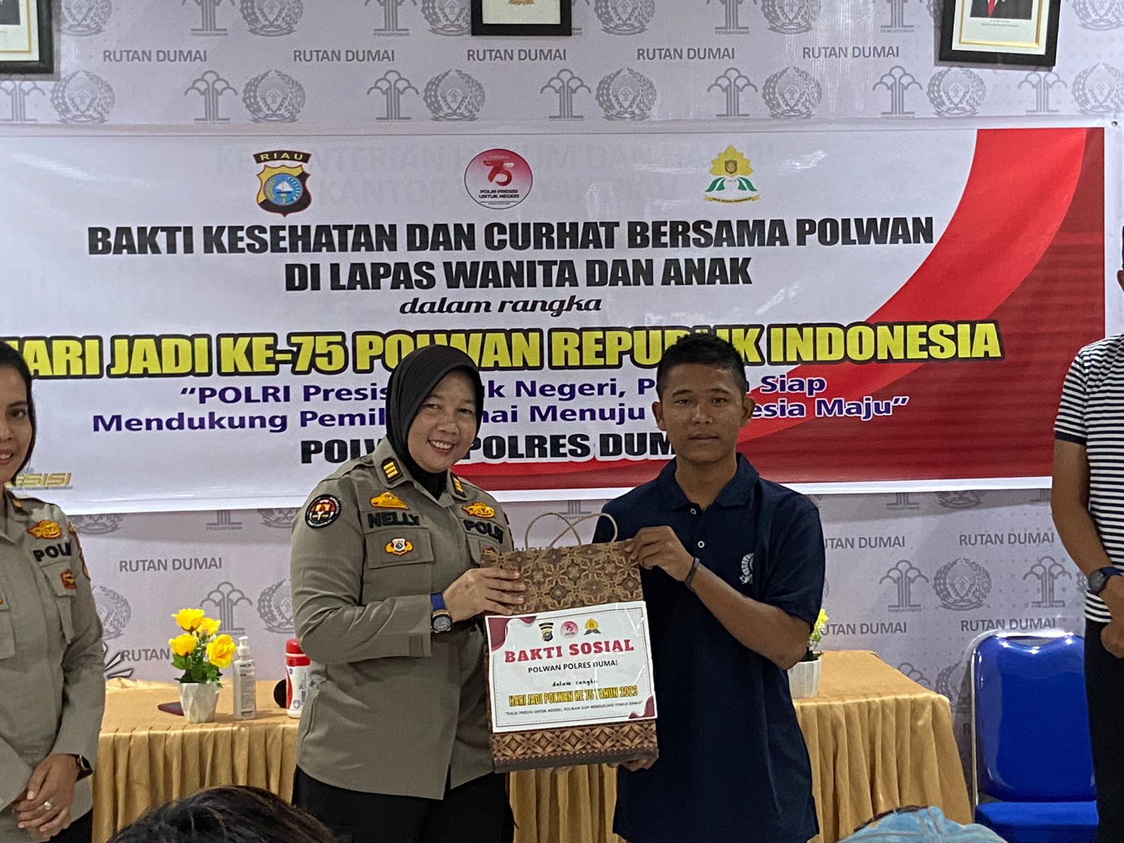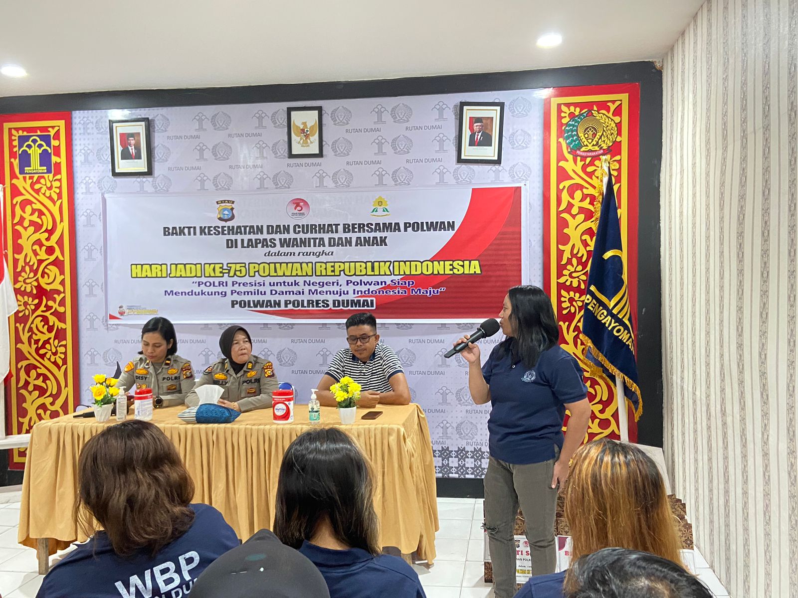 Suarakritik.com-DUMAI - Dalam rangka memperingati Hari Jadi Ke - 75 Polisi Wanita Republik Indonesia Tahun 2023, Polwan Polres Dumai menggelar Bakti Kesehatan dan Curhat Bersama Polwan di Rutan Kelas IIB Dumai Jalan Pemasyarakatan No. 01 Kelurahan Bumi Ayu Kecamatan Dumai Selatan, Sabtu (5/8/2023).