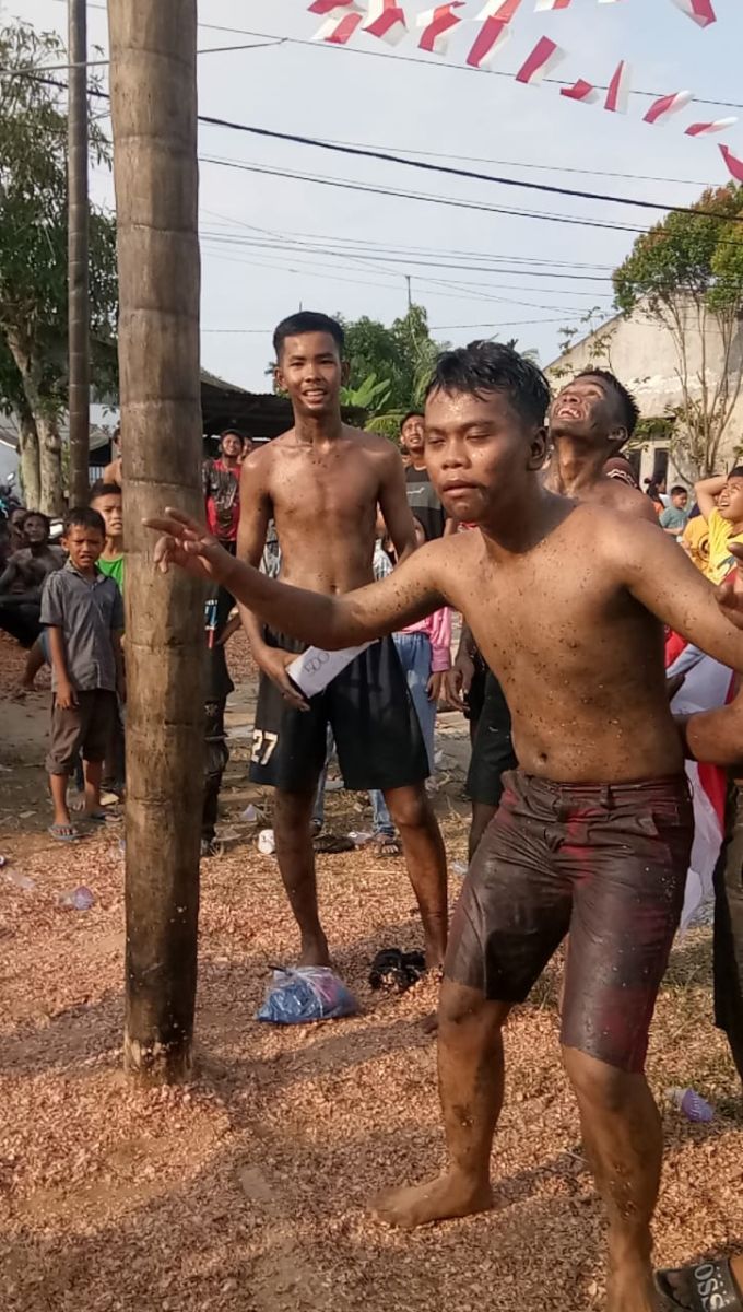 Remaja dan orang dewasa panjat pinang