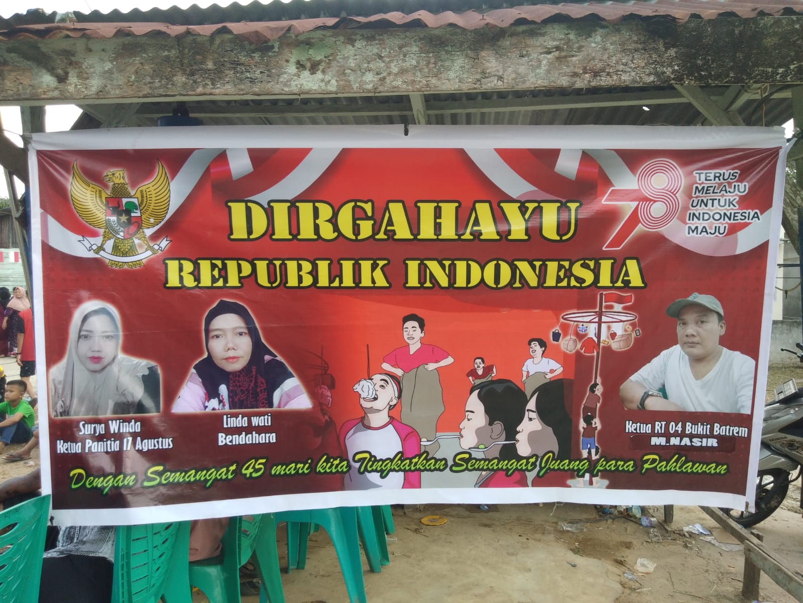 Ketua Panitia SURYA WINDA ikut mengucapkan terima kasih kepada RT 04 M.Nasir dan juga warga atas partisipasi untuk memberikan sumbangan untuk meriahkan HUT RI KE-78 di RT lingkungan mereka.