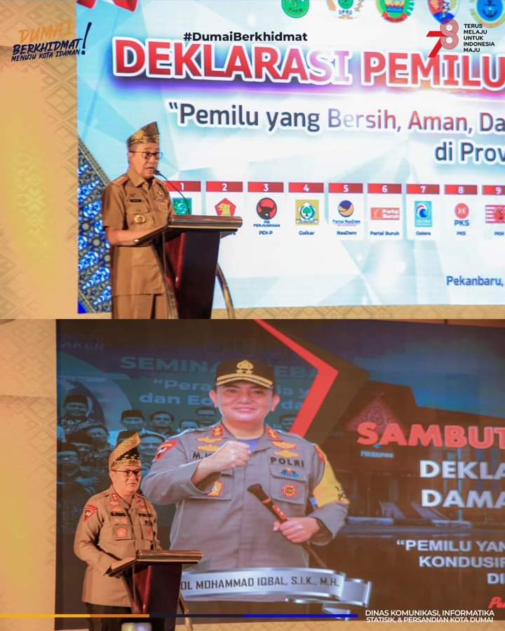 Orang nomor satu Dumai menilai bahwa kegiatan Deklarasi bersama stakeholder, Partai Politik, penyelenggara Pemilu, dan relawan ini sangat strategis, dalam rangka menciptakan situasi keamanan dan ketertiban masyarakat (kamtibmas) yang aman dan kondusif pada Pemilu 2024.
