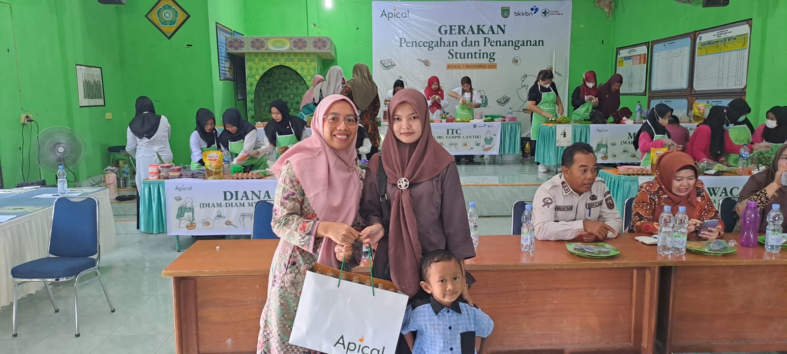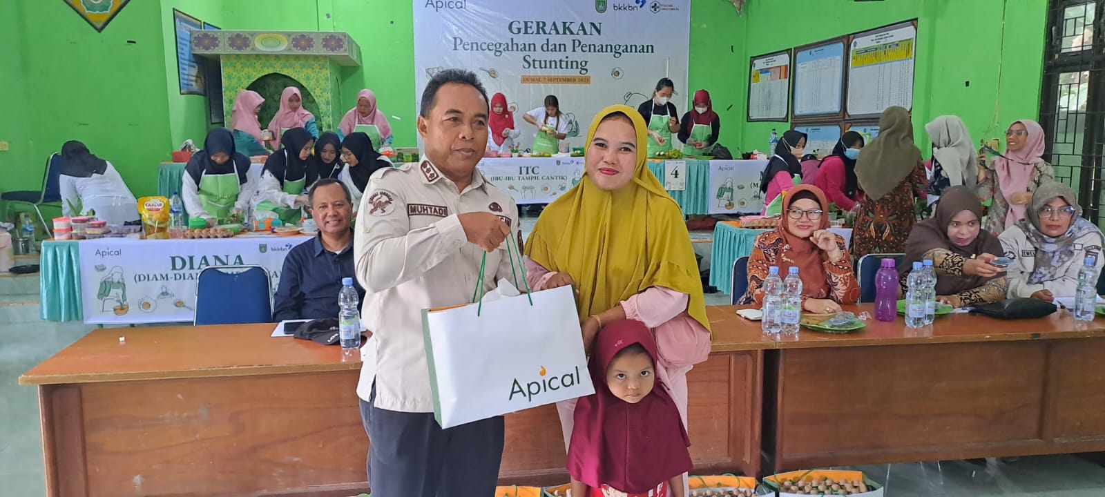 Gerakan pencegahan dan penanganan stunting diselanggarakan Apical Group bersama BKKBN Kota Dumai dan Puskesmas yang dilaksanakan di ruang serbaguna kantor Lurah Lubuk Gaung, Kecamatan Sungai Sembilan.