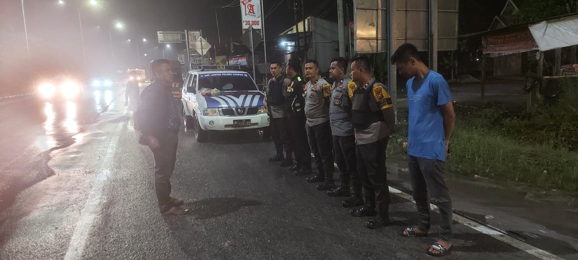 Antisipasi Balap liar Kapolsek Tambang Siagakan Personil di Playover Pintu Tol Sungai Pinang.