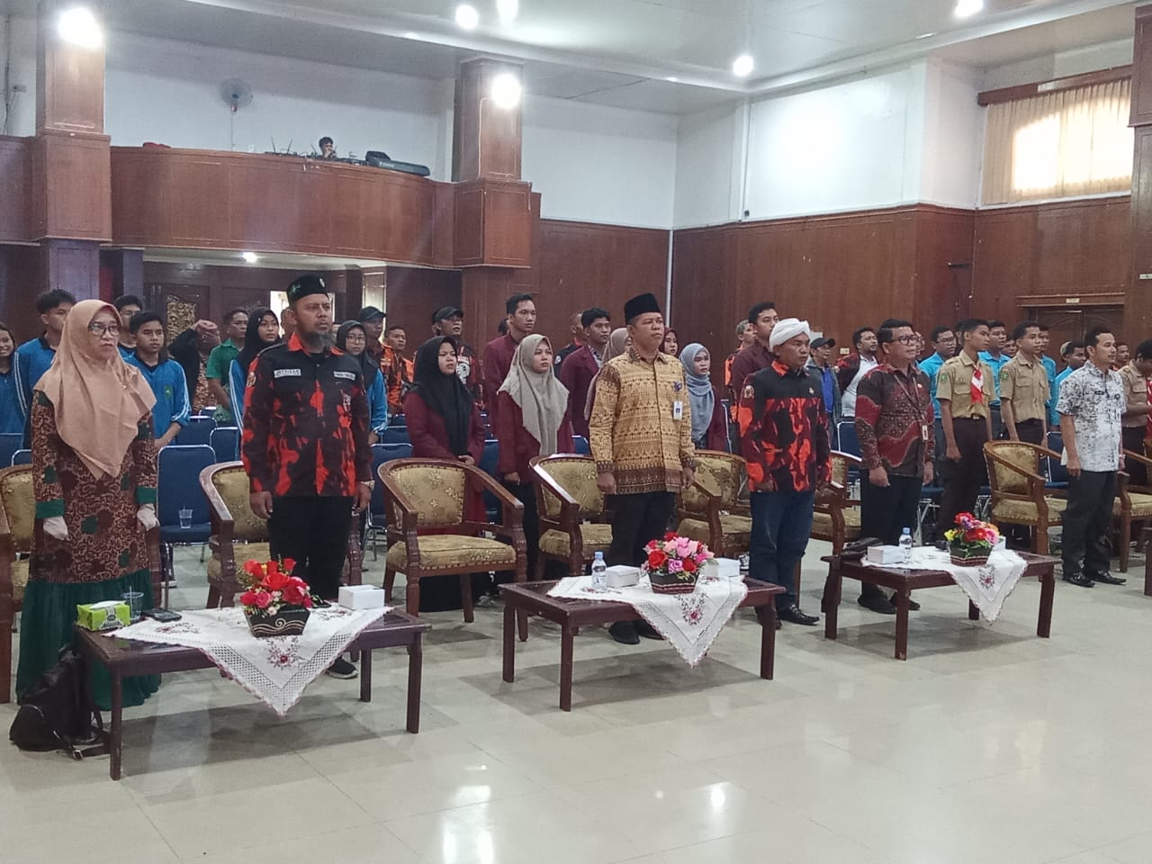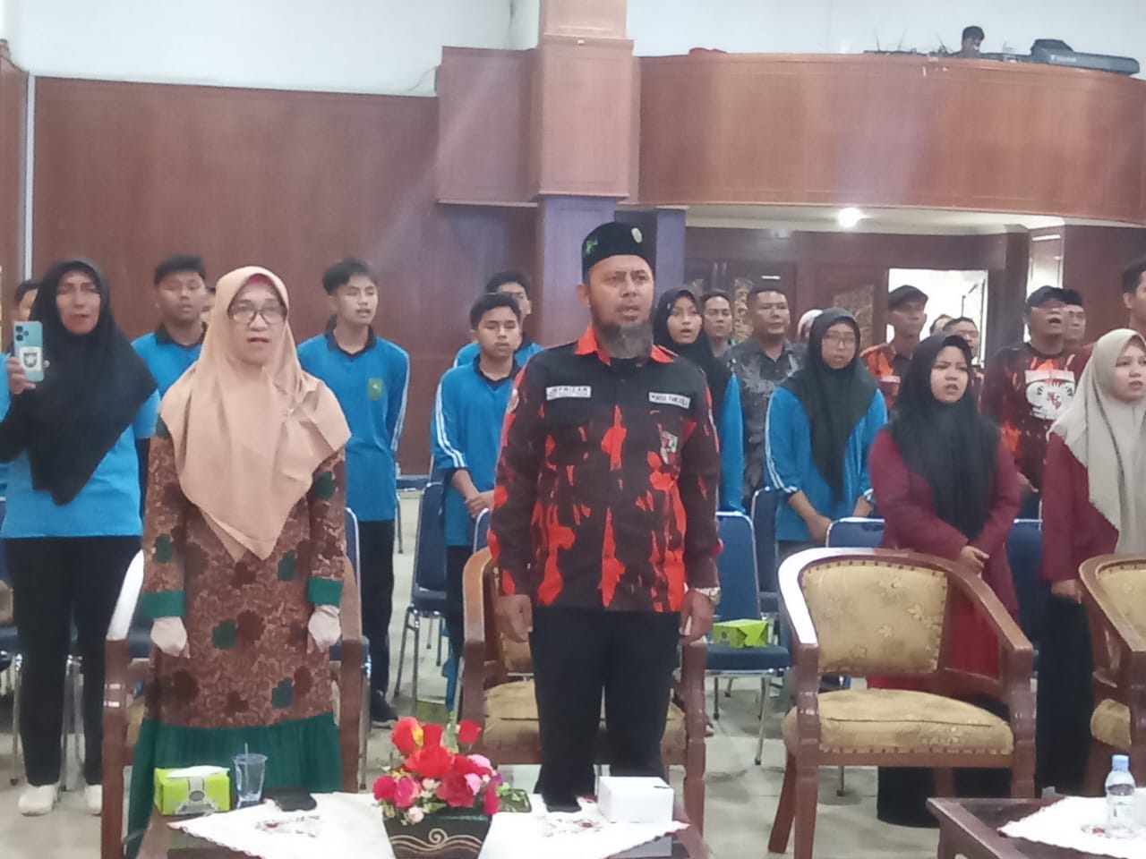 Suasana Gemuruh sekali sekali terdengar dalam ruangan itu saat para pemuda mengucapkan yel yel kebanggan mereka.