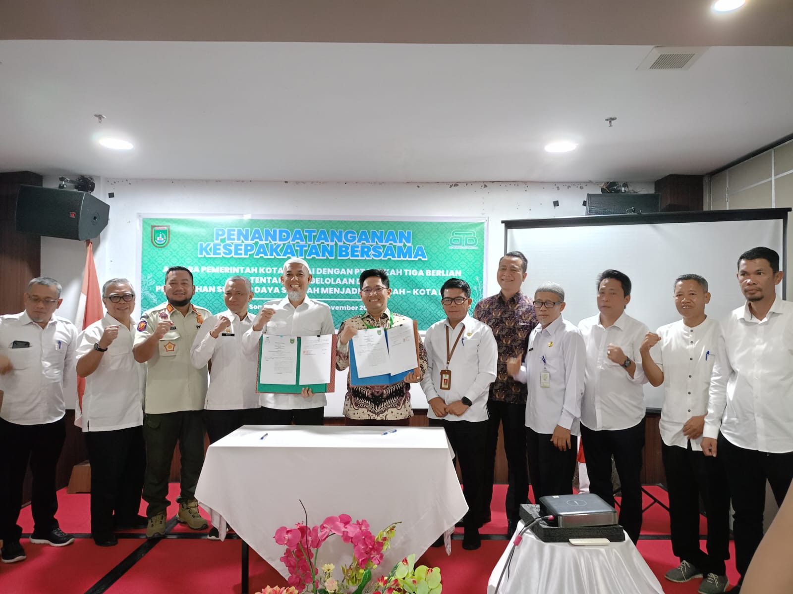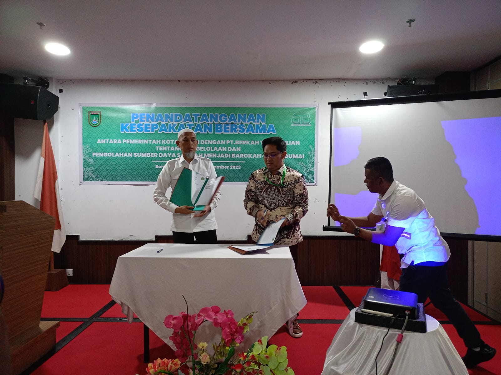 Suarakritik.com-Dumai, Walikota Dumai Paisal, SKM, Mars. tanda tangan MOU kerjasama pelayanan pengelolaan persampahan dengan PT. Berkah Tiga Briliand di Hotel Sona View. Rabu, 8/11/2003.