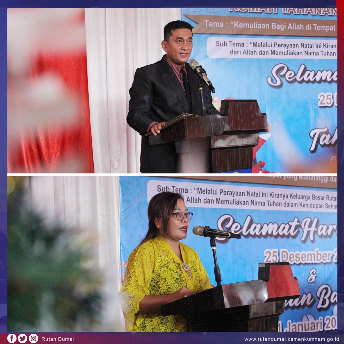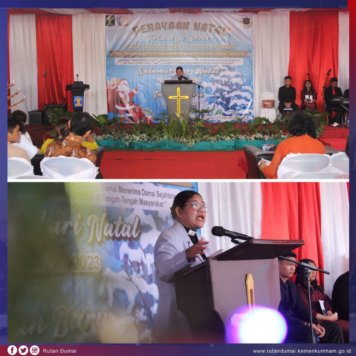 Dalam perayaan Natal bersama ini turut hadir Kepala Rutan Dumai Bastian Manalu dan Ketua DWP Rutan Dumai Ny. Sisca Bastian, pejabat struktural dan Perwakilan dari Kemenag Kota Dumai.