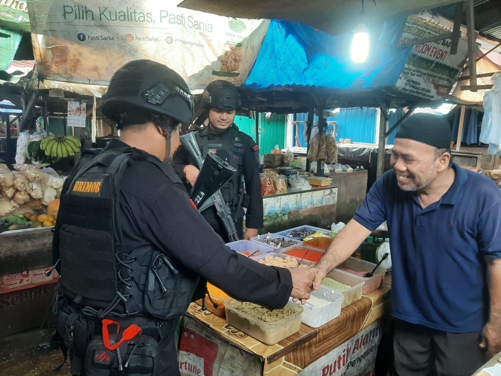 " Dengan hadirnya kepolisian ditengah masyarakat dapat mewujudkan Sitkamtibmas yang aman dan nyaman serta kondusif tanpa ada gangguan khususnya bagi warga masyarakat yang sedang berbelanja ", tambahnya.