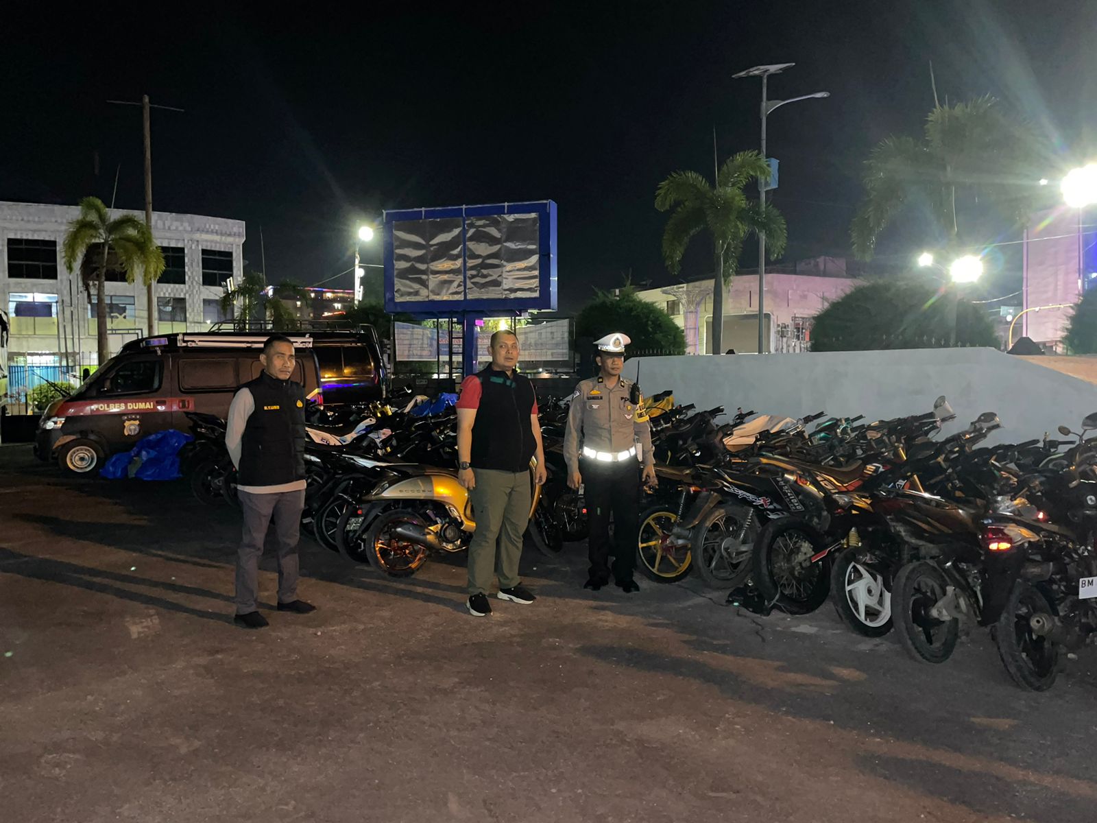 Kepada rekan media, Kapolres Dumai menjelaskan bahwa puluhan pemuda dan belasan kendaraan roda dua yang diduga akan digunakan untuk mengikuti aksi balap liar telah diamankan di Mapolres Dumai.